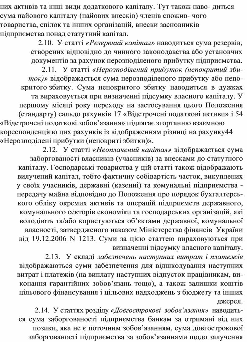 2.20. У статті «Нерозподілений прибуток (непокритий зби- ток)» відображається сума нерозподіленого прибутку або непо- критого збитку. Сума непокритого збитку наводиться в дужках та вираховується при визначенні підсумку власного капіталу. У першому місяці року переходу на застосування цього Положення (стандарту) сальдо рахунків 17 «Відстрочені податкові активи» і 54