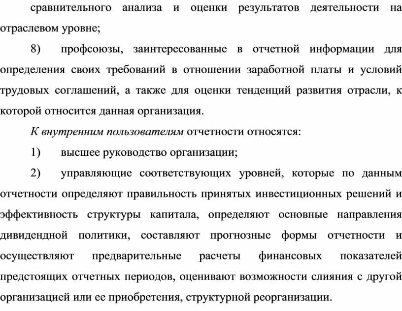 8) профсоюзы, заинтересованные в отчетной информации для определения своих требований в отношении заработной платы и условий трудовых соглашений, а также для оценки тенденций развития отрасли, к которой относится данная организация.
