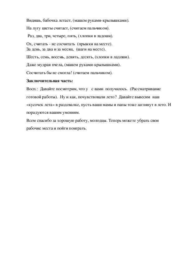 Восп.: Молодцы! А теперь давайте представим себе лето, хоть на несколько