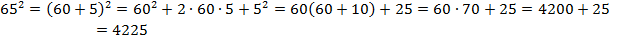 Задание: Найти способ рационального возведения в квадрат чисел, оканчивающихся на 5. Пример: