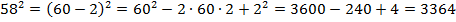 Квадрат суммы и разности двух выражений помогает вычислять значение квадрата числа, оканчивающегося на 1,2,8,9: