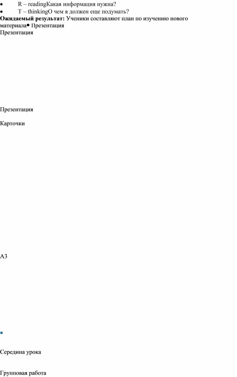 Рефлексия по уроку Были ли цели урока/цели обучения реалистичными? Все ли учащиеся достигли ЦО? Если нет, то почему? Правильно ли проведена дифференциация на уроке? Выдержаны ли были временные этапы урока? Какие отступления были от плана урока и почему? |