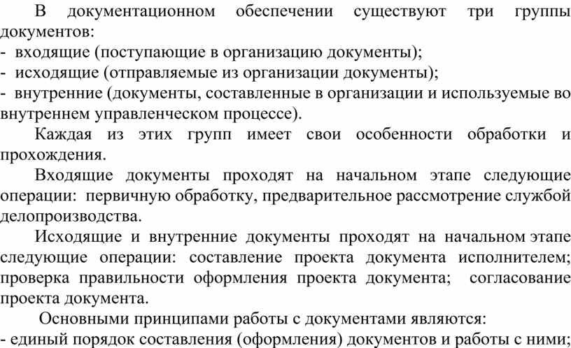 Входящие документы проходят на начальном этапе следующие операции: первичную обработку, предварительное рассмотрение службой делопроизводства.