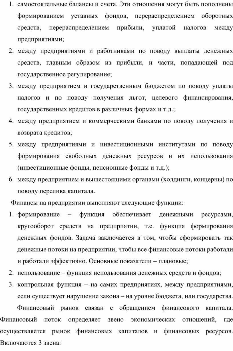 Финансовый рынок связан с обращением финансового капитала. Финансовый поток определяет звено экономических отношений, где осуществляется рынок финансовых капиталов и финансовых ресурсов. Включаются 3 звена: