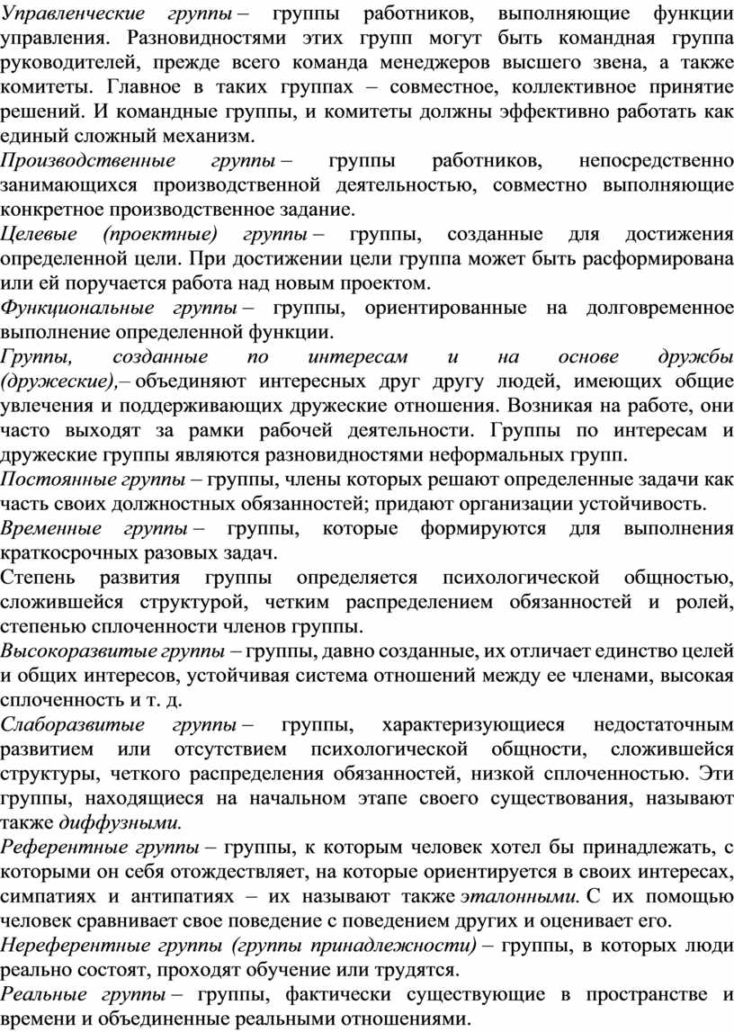 Реальные группы – группы, фактически существующие в пространстве и времени и объединенные реальными отношениями.