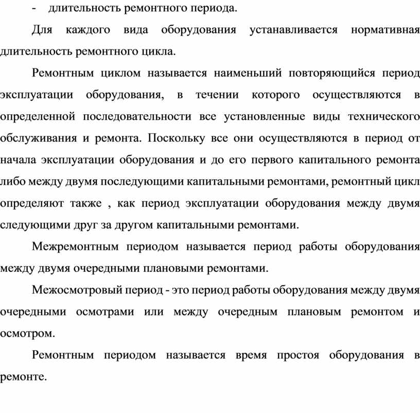 Межремонтным периодом называется период работы оборудования между двумя очередными плановыми ремонтами.
