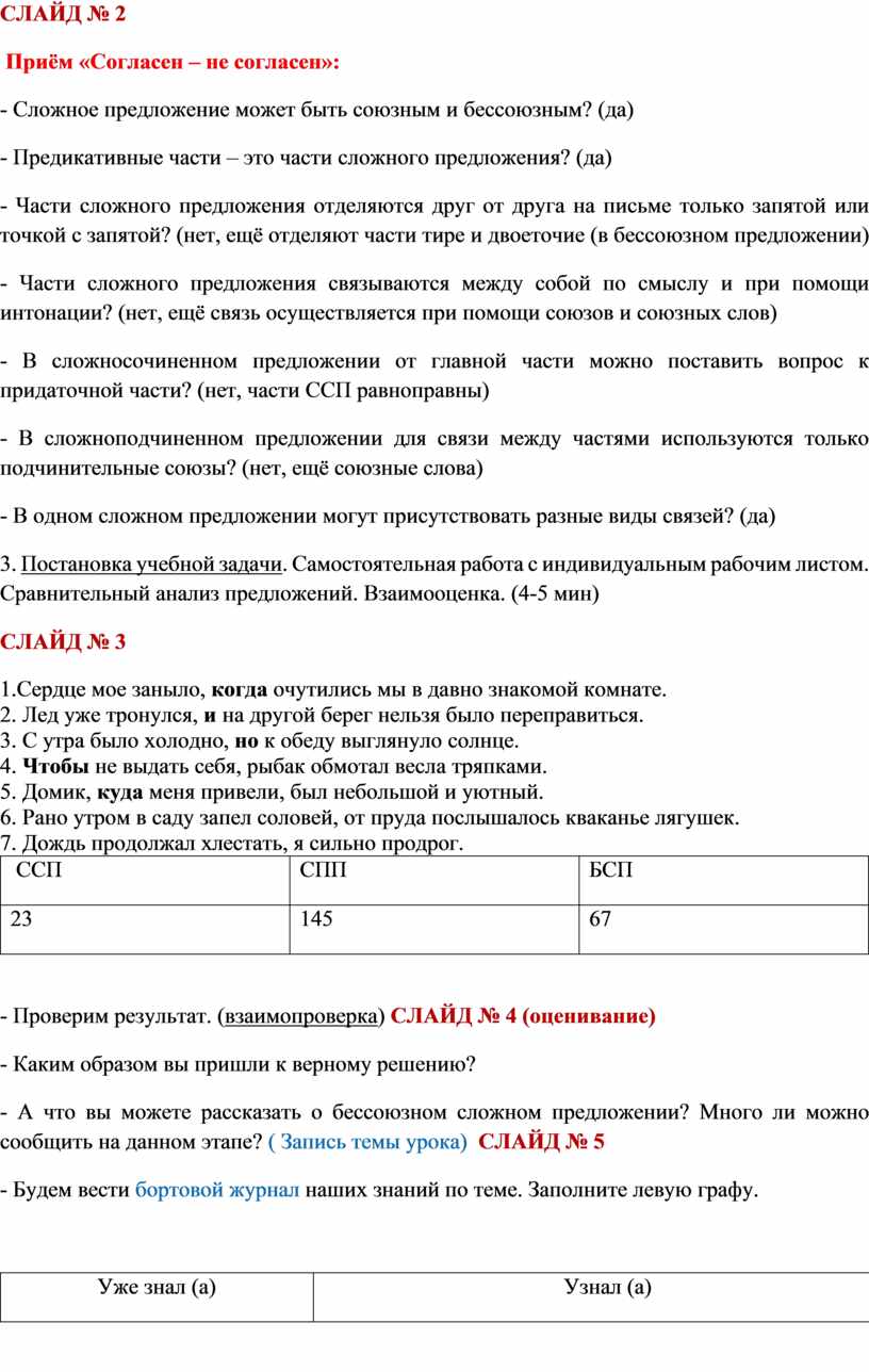 · организация деятельности учащихся по изучению и первичному закреплению понятия бессоюзное сложное предложение;