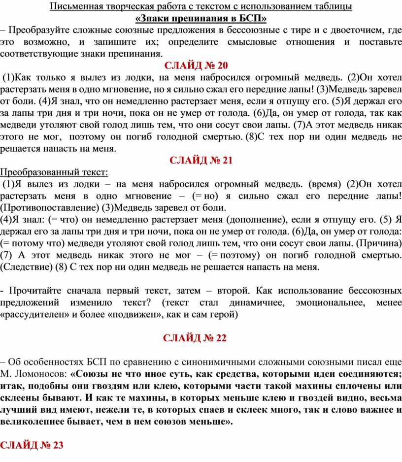 - Прочитайте сначала первый текст, затем – второй. Как использование бессоюзных предложений изменило текст? (текст стал динамичнее, эмоциональнее, менее «рассудителен» и более «подвижен», как и сам герой)
