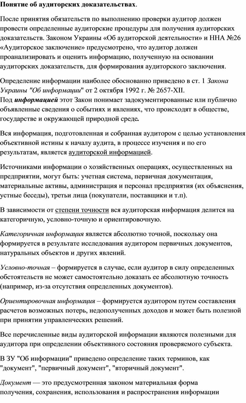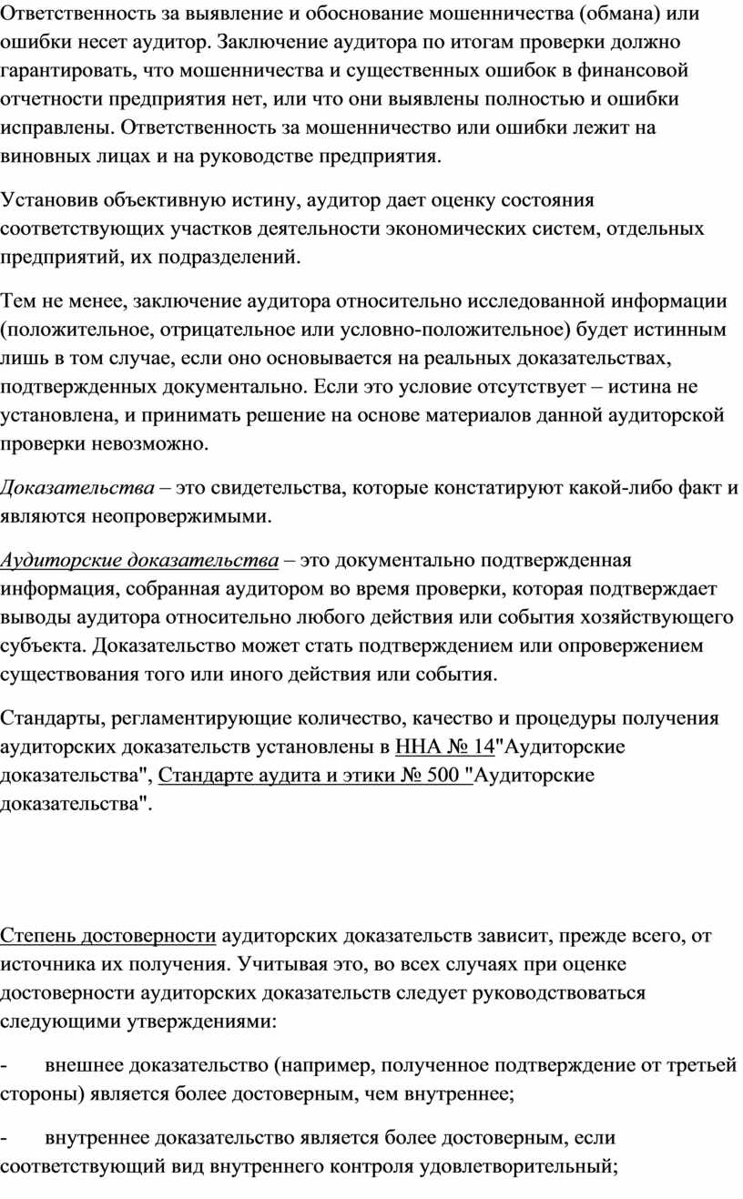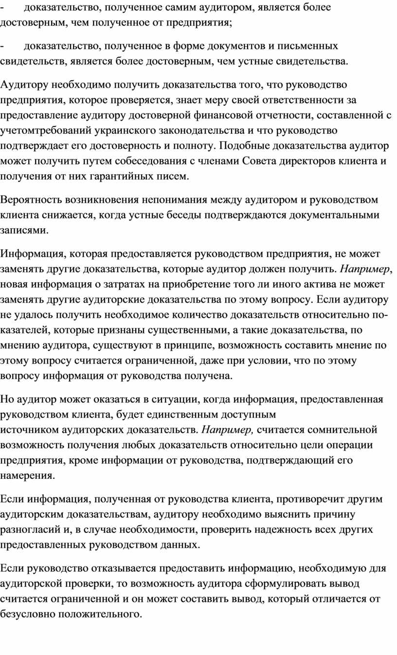 - доказательство, полученное самим аудитором, является более достоверным, чем полученное от предприятия;