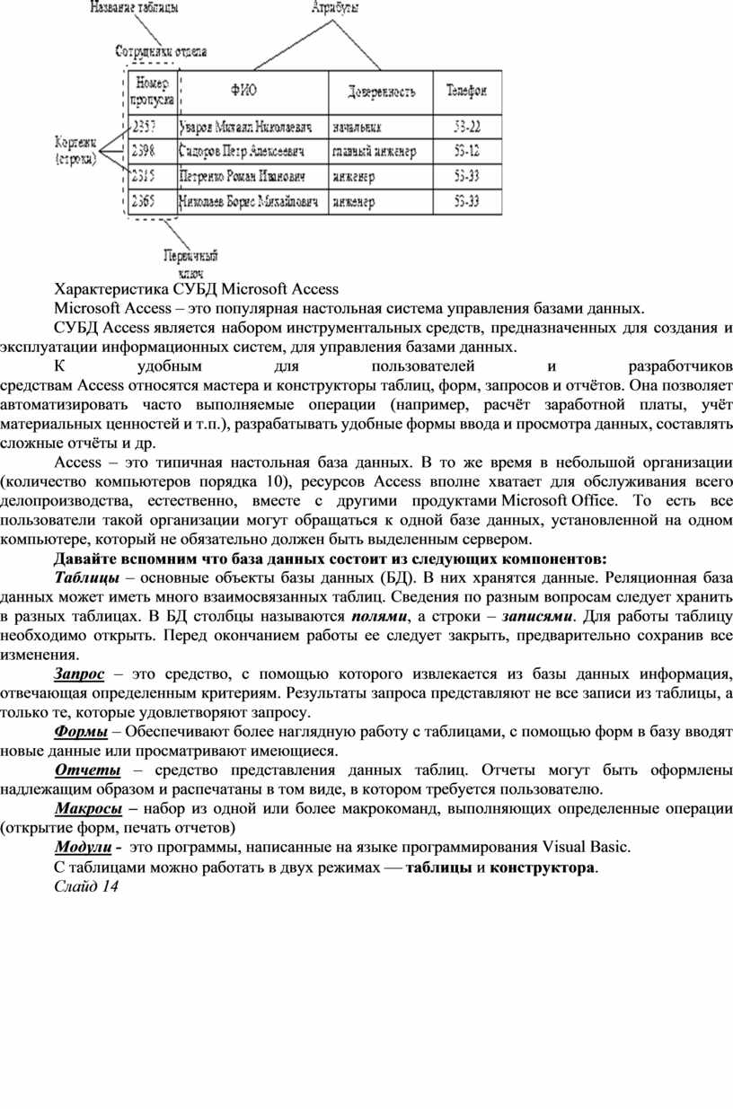 СУБД Access является набором инструментальных средств, предназначенных для создания и эксплуатации информационных систем, для управления базами данных.