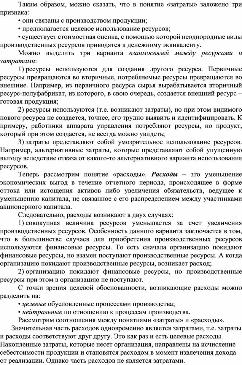 Таким образом, можно сказать, что в понятие «затраты» заложено три признака: