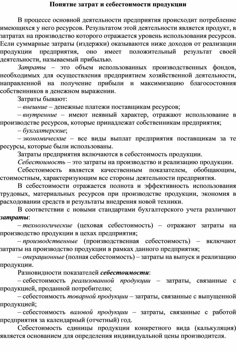 Себестоимость является качественным показателем, обобщающим, стоимостным, характеризующим все стороны деятельности предприятия.
