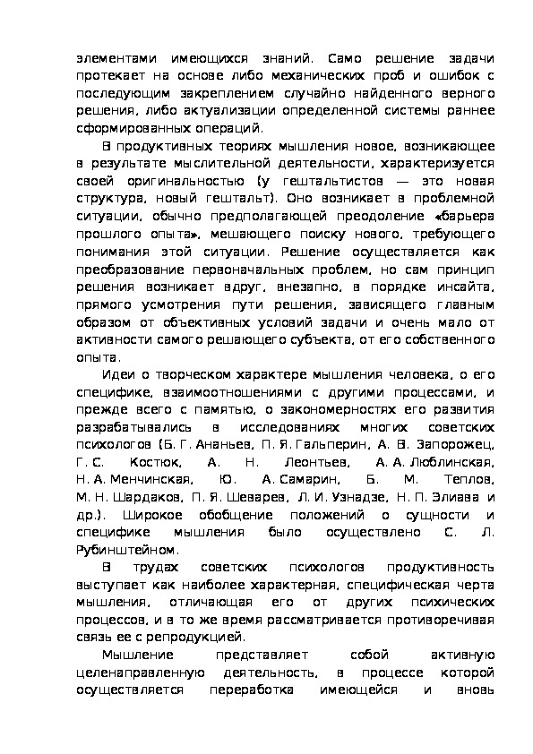 Известно, что в разное время вопросами мышления занимались ученые-психологи различных школ и направлений.