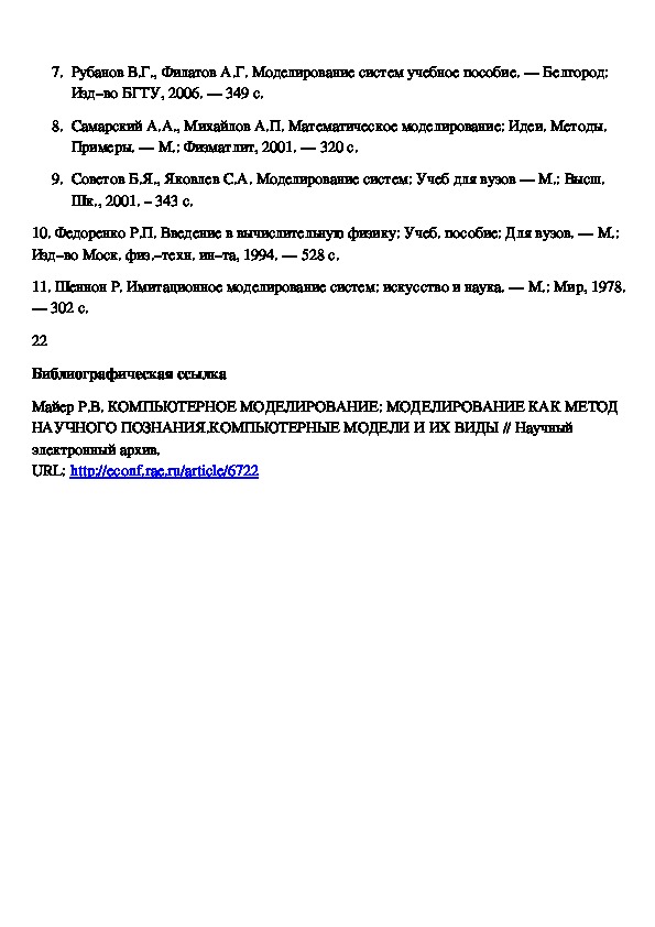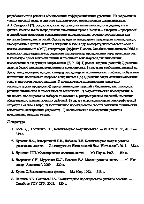 6. Паничев В.В., Соловьев Н.А. Компьютерное моделирование: учебное пособие. ––