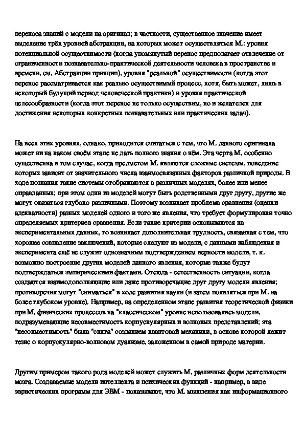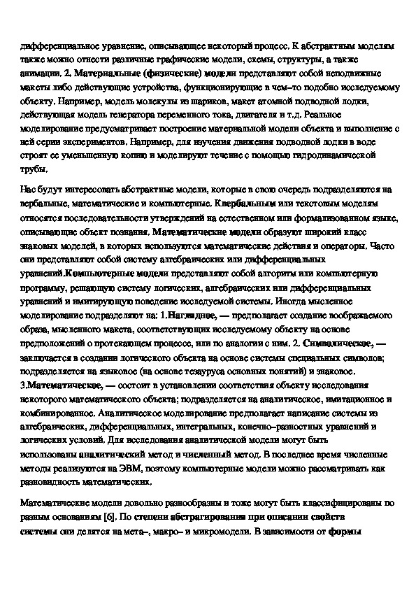 моделей реально существующих предметов и явлений (живых и неживых систем,