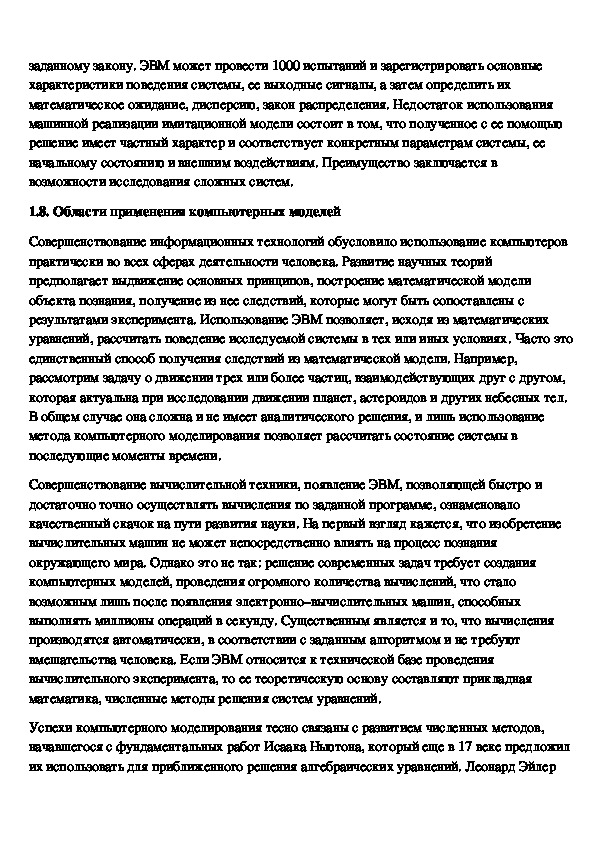 1.8. Области применения компьютерных моделей