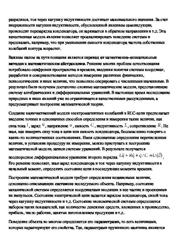моделируемое явление. Например, механические и электрические колебания описываются