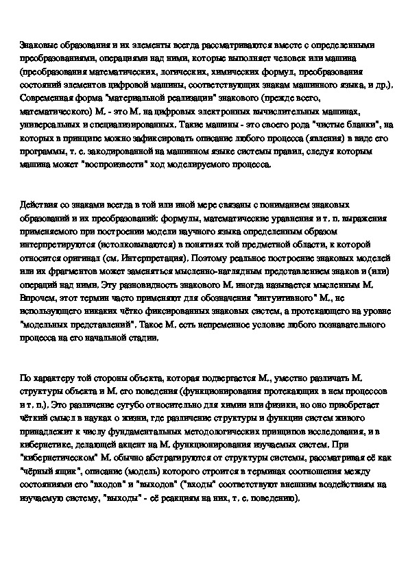 осуществляемое средствами языка математики и логики (см. Математическая модель).Знаковые образования и их элементы всегда рассматриваются вместе с определенными
