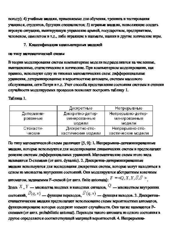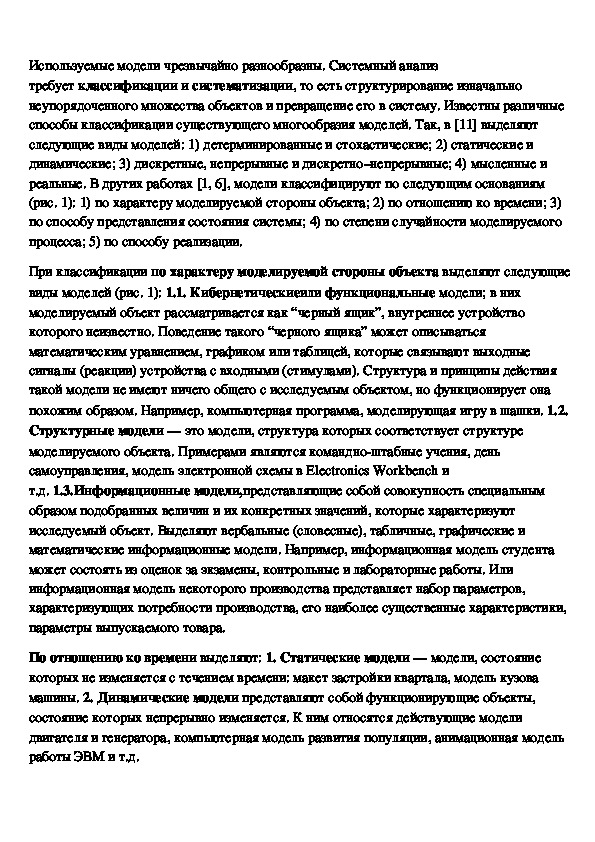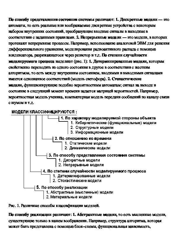 в науке и технике. Её можно проводить по различным основаниям: по характеру моделей