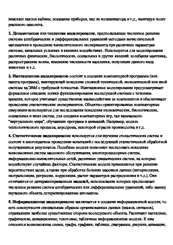 Моделирование используется в тех случаях, когда сам объект либо труднодоступен, либо его прямое изучение экономически невыгодно и т.д. Различают ряд видов моделирования: