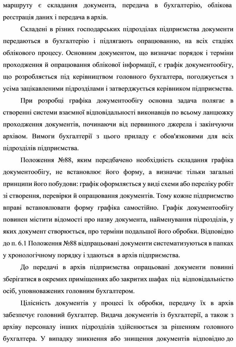 При розробці графіка документообігу основна задача полягає в створенні системи взаємної відповідальності виконавців по всьому ланцюжку проходження документів, починаючи від первинного джерела і закінчуючи архівом. Вимоги бухгалтерії з цього приладу є обов'язковими для всіх підрозділів підприємства.