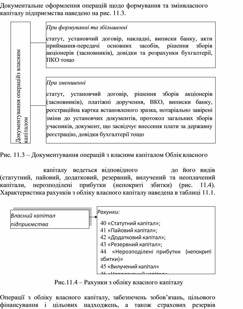 Рис. 11.3 – Документування операцій з власним капіталом Облік власного капіталу ведеться відповідного до його видів