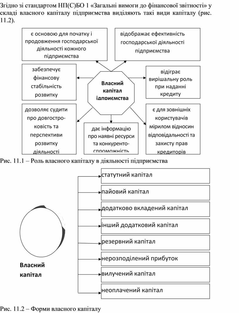 Згідно зі стандартом НП(С)БО 1 «Загальні вимоги до фінансової звітності» у складі власного капіталу підприємства виділяють такі види капіталу (рис. 11.2).