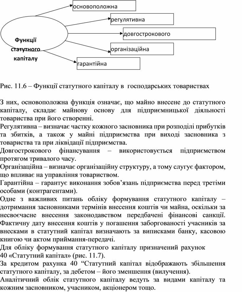 Рис. 11.6 – Функції статутного капіталу в господарських товариствах
