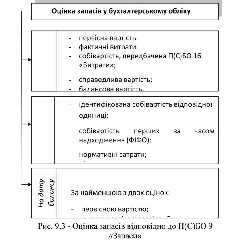 Рис. 9.3 - Оцінка запасів відповідно до П(С)БО 9 «Запаси»