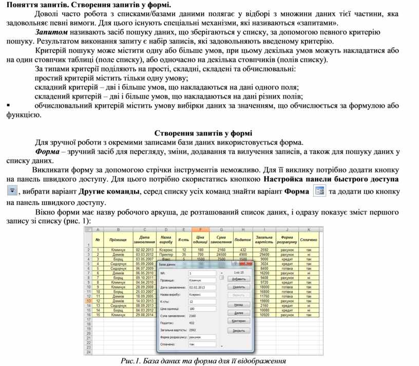 Форма – зручний засіб для перегляду, зміни, додавання та вилучення записів, а також для пошуку даних у списку даних.