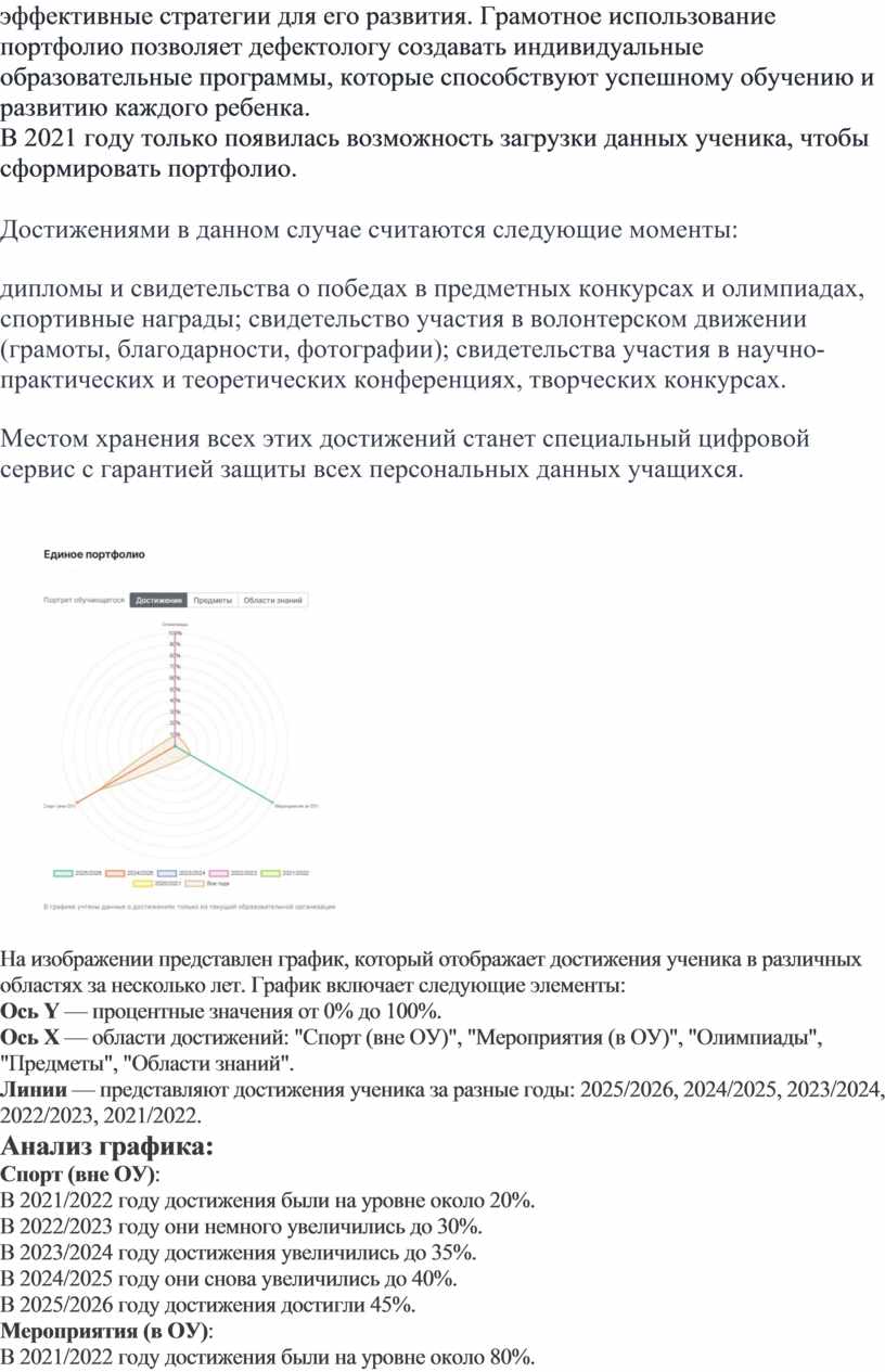 Основная цель портфолио ученика — это создание целостного представления о его развитии, достижениях и трудностях. Для дефектолога портфолио служит инструментом для: