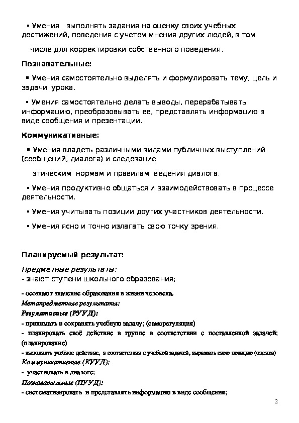 • Умения оценивать собственную учебную деятельность, свои достижения и анализировать своё эмоциональное