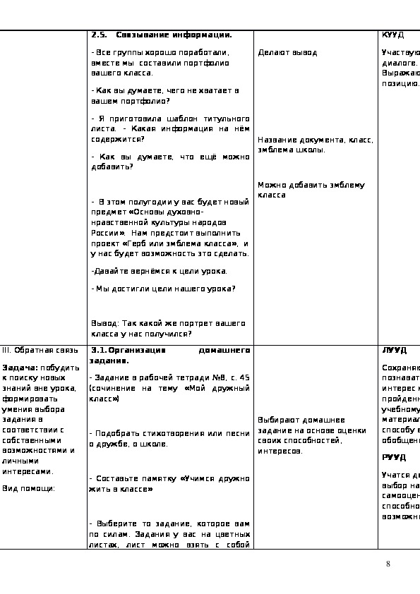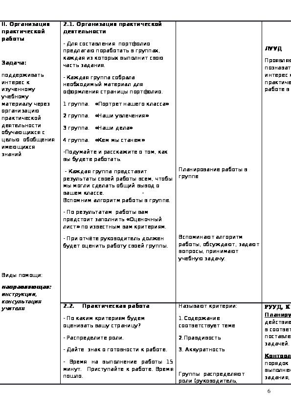 Тема урока: Практикум по теме «Портфолио нашего класса»
