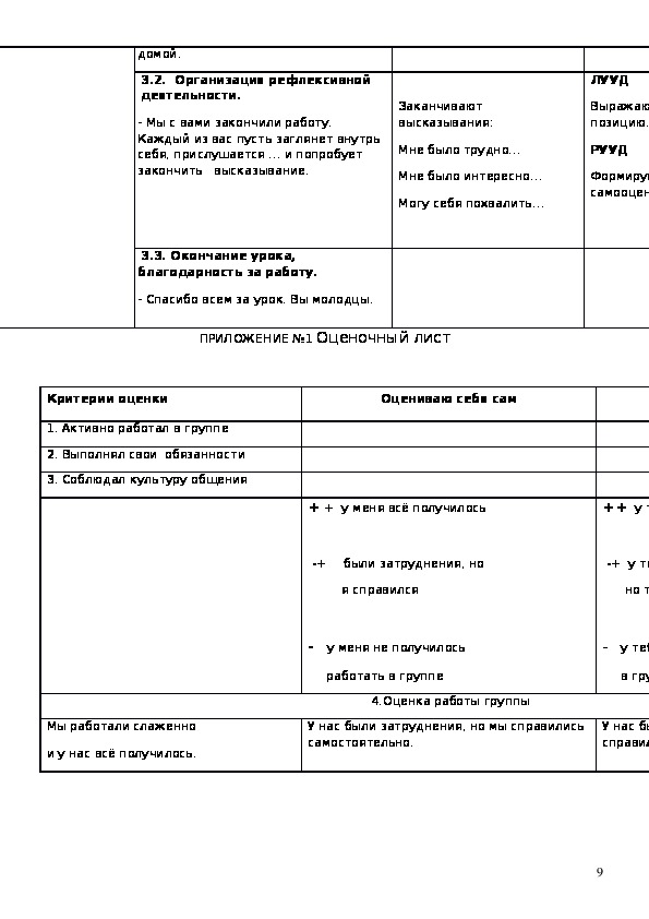 • Умения планировать свою деятельность.• Умения выполнять задания на оценку своих учебных