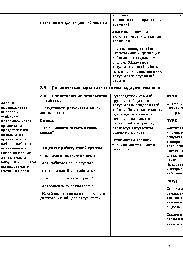 планировать своё действие в группе в соответствии с поставленной задачей;