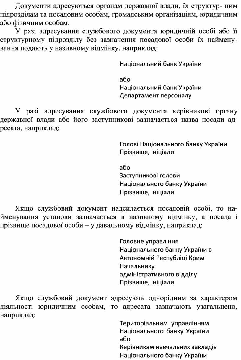 Документи адресуються органам державної влади, їх структур- ним підрозділам та посадовим особам, громадським організаціям, юридичним або фізичним особам.