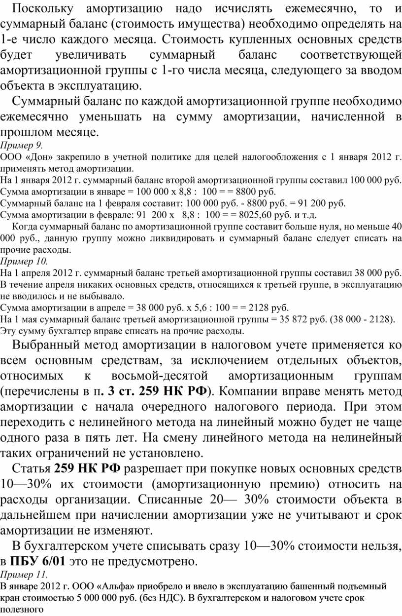 где А — сумма амортизации за месяц по соответствующей амортизационной группе; В — суммарный баланс соответствующей амортизационной группы; N — норма амортизации для соответствующей амортизационной группы.