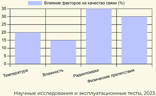 Испытания показали, что радиопомехи и физические препятствия оказывают наибольшее влияние на устойчивость связи. Применение адаптивных систем повышает надёжность эксплуатации.