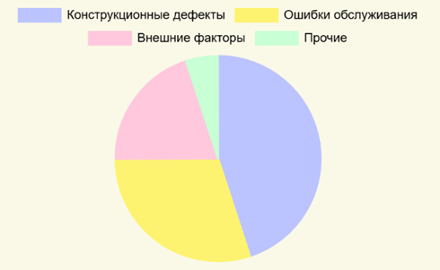 Диаграмма отражает наиболее частые причины сбоев, что позволяет сосредоточиться на их предотвращении для повышения надёжности эксплуатации.