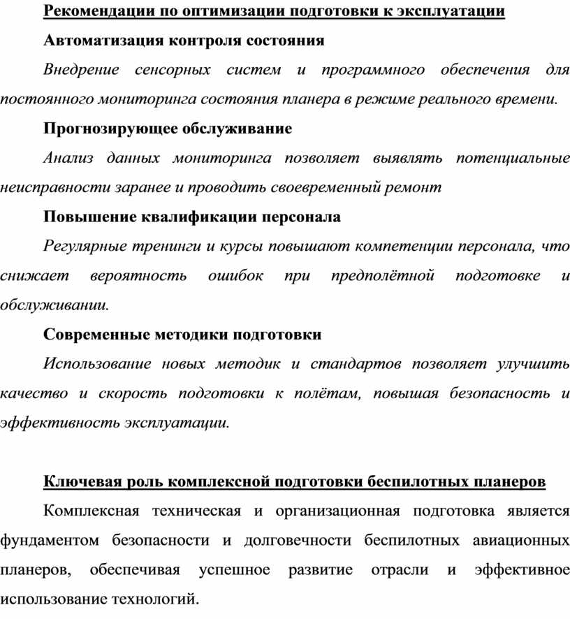 Комплексная техническая и организационная подготовка является фундаментом безопасности и долговечности беспилотных авиационных планеров, обеспечивая успешное развитие отрасли и эффективное использование технологий.