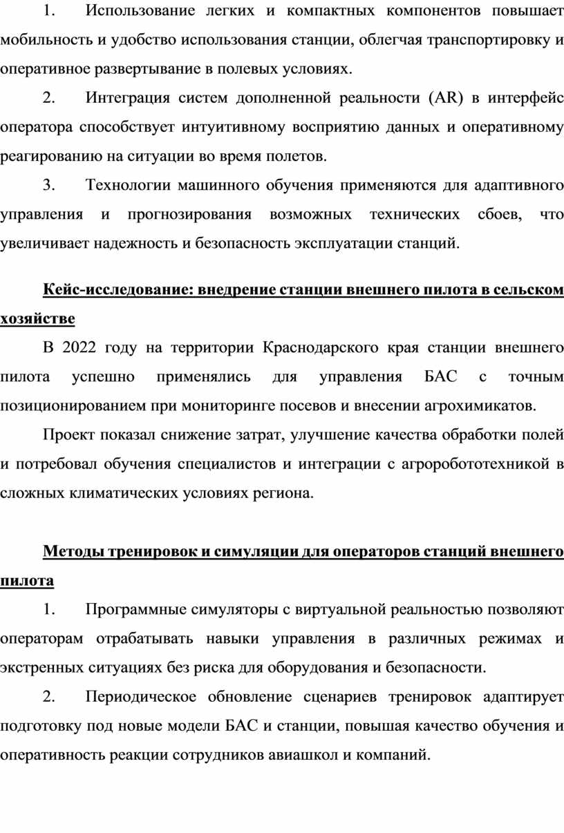 2. Периодическое обновление сценариев тренировок адаптирует подготовку под новые модели БАС и станции, повышая качество обучения и оперативность реакции сотрудников авиашкол и компаний.