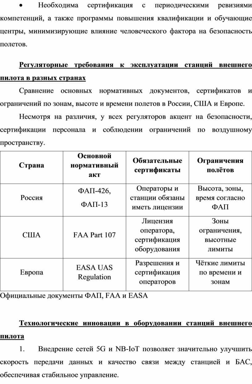 Регуляторные требования к эксплуатации станций внешнего пилота в разных странах