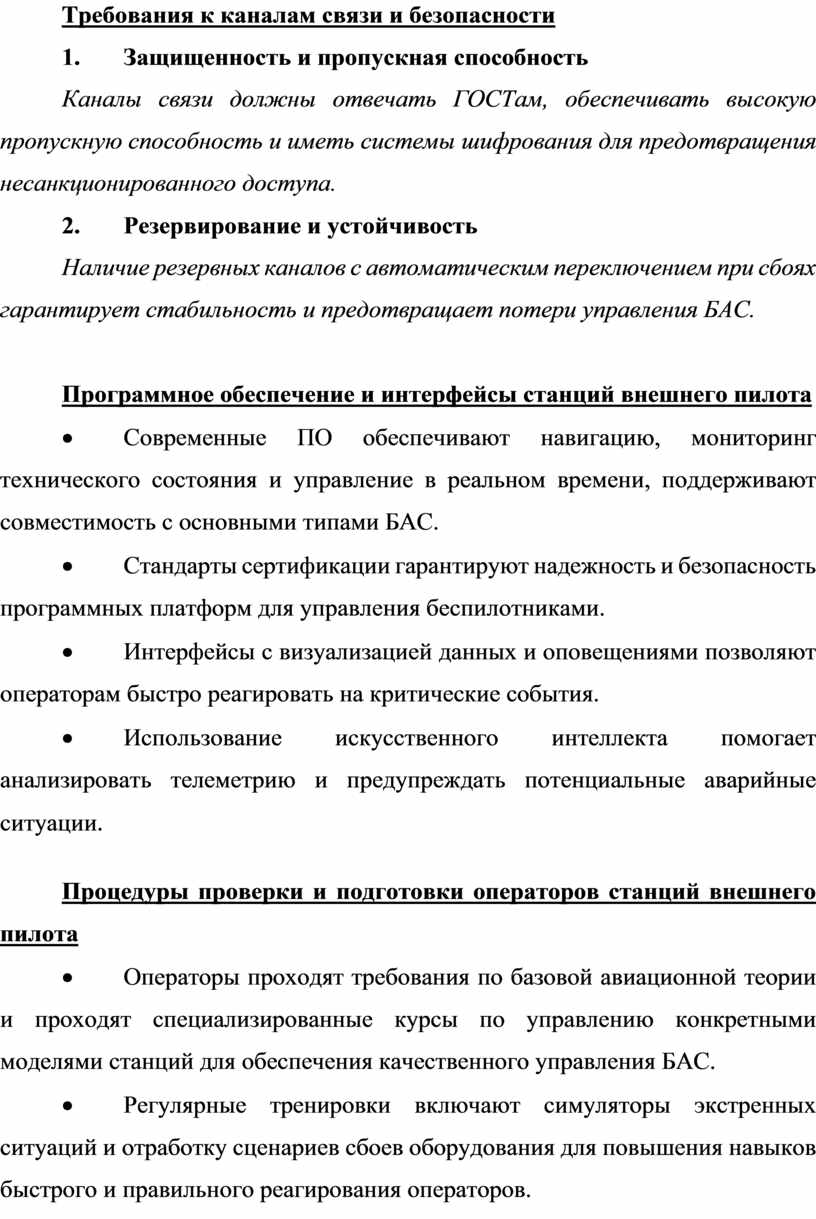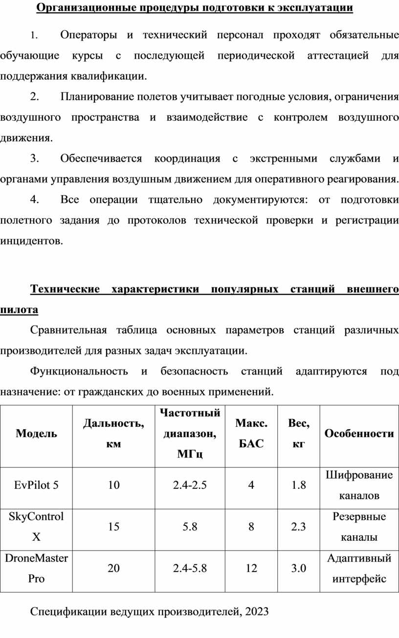 · Операторы проходят требования по базовой авиационной теории и проходят специализированные курсы по управлению конкретными моделями станций для обеспечения качественного управления БАС.