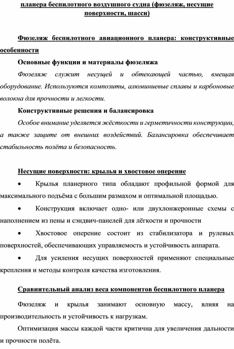Сравнительный анализ веса компонентов беспилотного планера