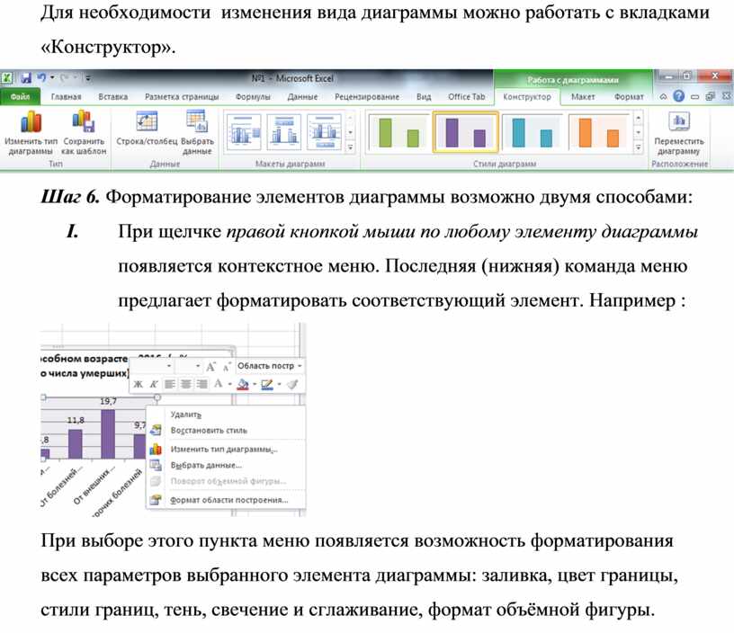 Шаг 6. Форматирование элементов диаграммы возможно двумя способами: