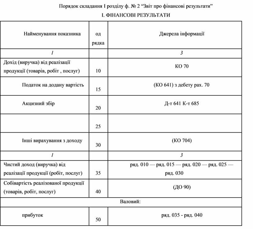 Порядок складання І розділу ф. № 2 “Звіт про фінансові результати” |
