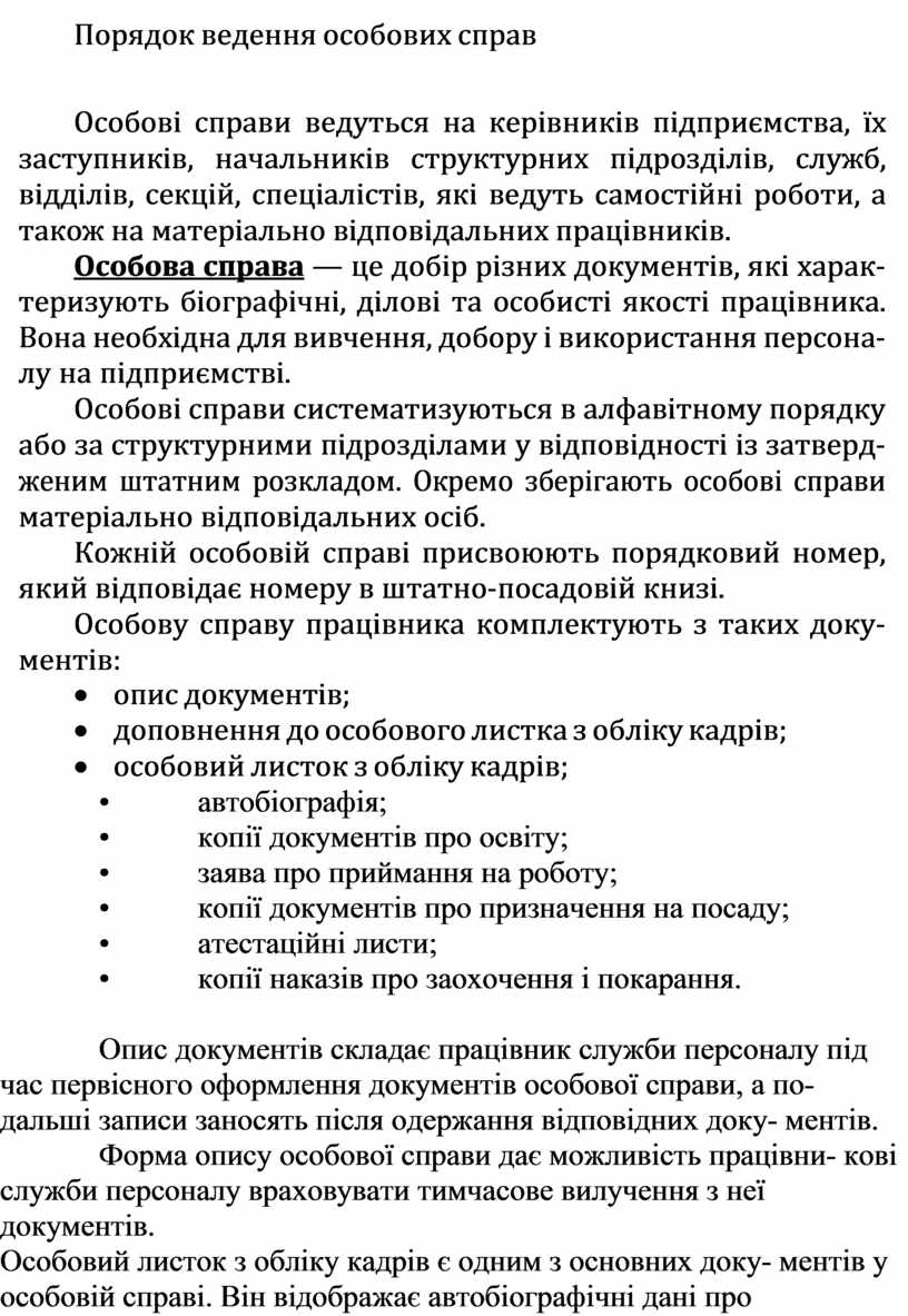 Особова справа — це добiр рiзних документiв, якi харак- теризують бiографiчнi, дiловi та особисті якостi працiвника. Вона необхiдна для вивчення, добору i використання персона- лу на пiдприємствi.