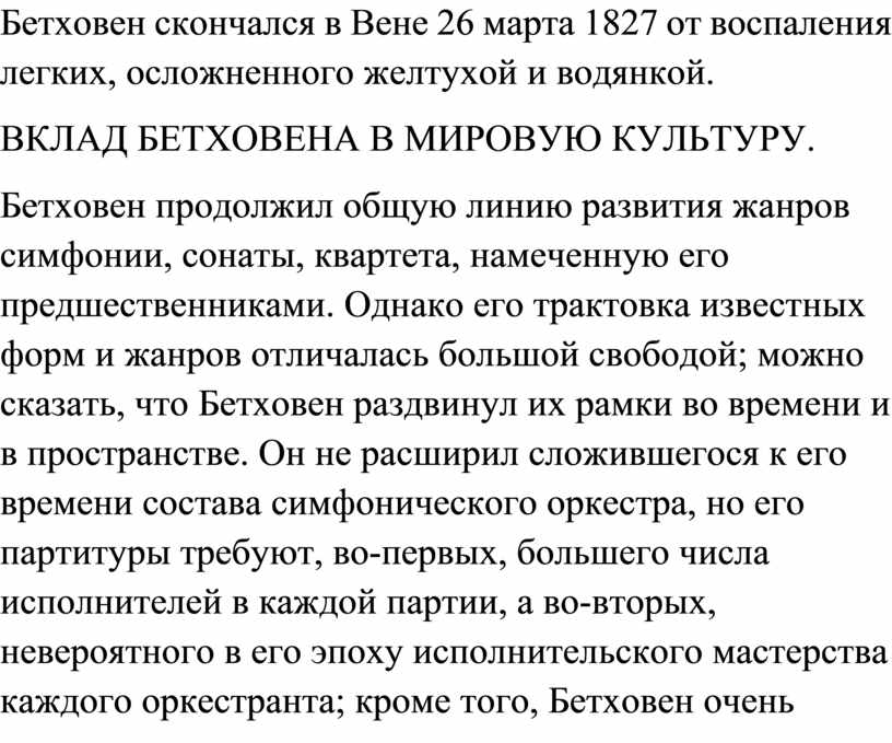 ВКЛАД БЕТХОВЕНА В МИРОВУЮ КУЛЬТУРУ.