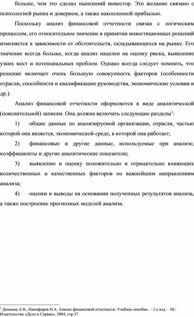 Анализ финансовой отчетности является неотъемлемой частью большинства решений, касающихся кредитования, инвестирования и др.