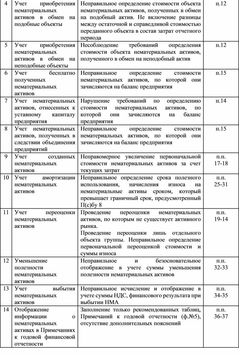 Нарушение требований по определению стоимости нематериальных активов, по которой они зачисляются на баланс предприятия |
